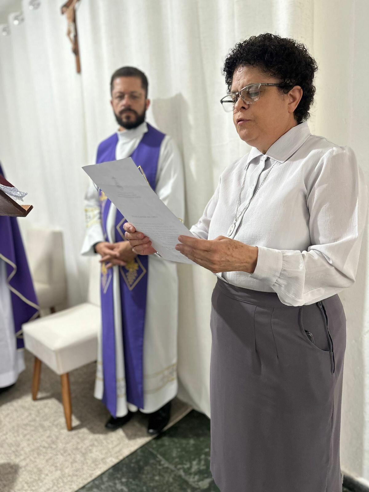 A celebração contou com a presença das Irmãs Nilza, Maria Elena e da Irmã Maria José Fideles, representante da Superiora Geral do Instituto das Missionárias de Nossa Senhora das Graças, Irmã Antônia da Consolação da Silva, bem como do Pe. Igor Batista, pároco da Paróquia São Judas Tadeu, e de demais membros da comunidade paroquial.