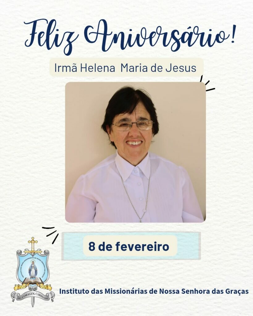 Hoje é dia de celebrar o dom da vida da Irmã Helena Maria do Instituto das Missionárias de Nossa Senhora das Graças.